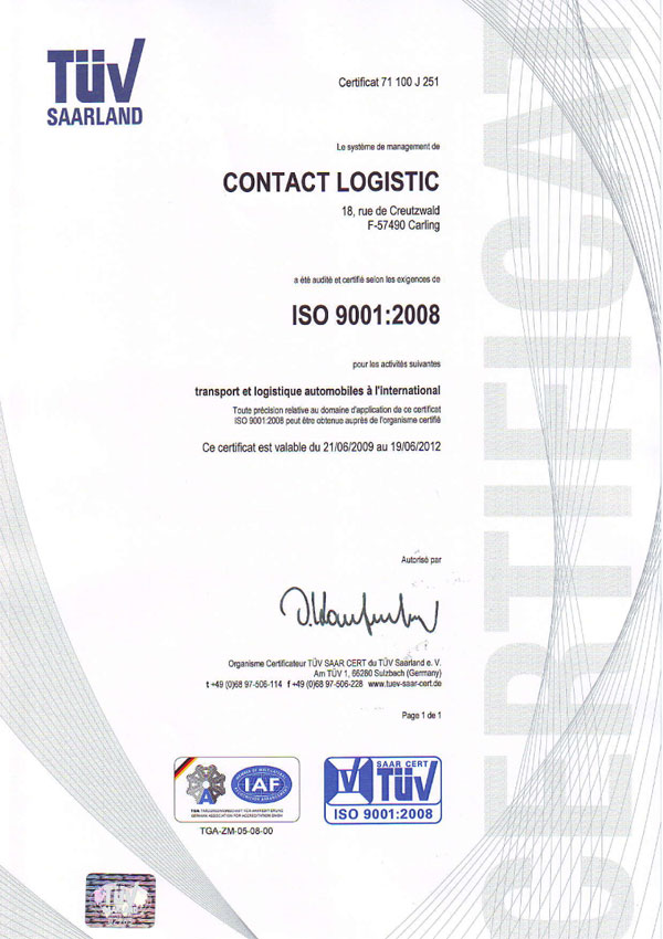 Nos résultats ont été couronnés par l’attribution d’un certificat EN ISO 9001 version 2008. Cette reconnaissance nous conforte dans la poursuite de nos efforts pour toujours améliorer la qualité de nos services.